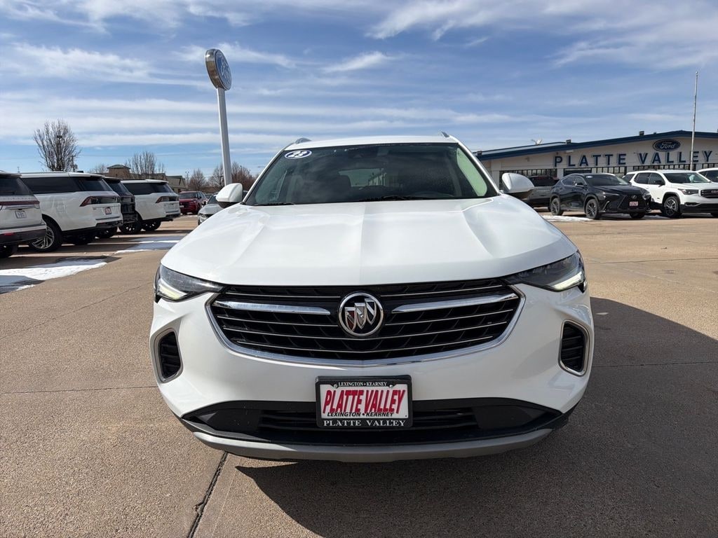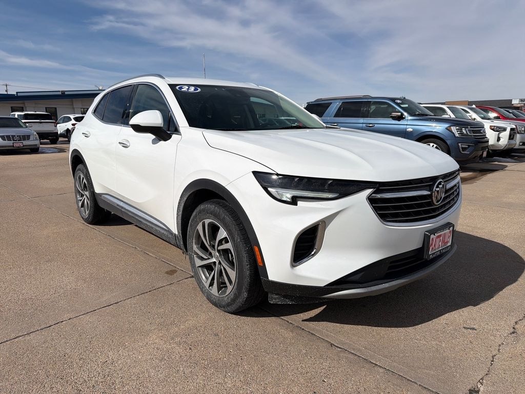 2023 Buick Envision Essence â€" 31,007 miles â€" Kearney, NE. This AWD compact luxury SUV pairs a fuel-efficient 4-cylinder 2.0L gasoline engine with refined comfort and advanced safety tech, making it an ideal choice for Nebraska roads and beyond. The Essence trim includes premium features like a Back-Up Camera and Lane Departure Warning to help keep you confident behind the wheel. Stay connected with Hands-Free Bluetooth and enjoy entertainment on the go with Satellite/XM Radio.